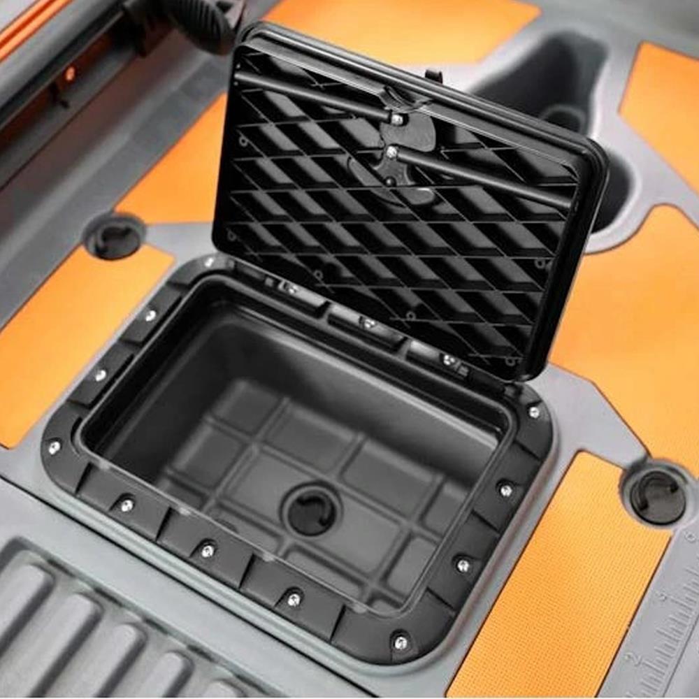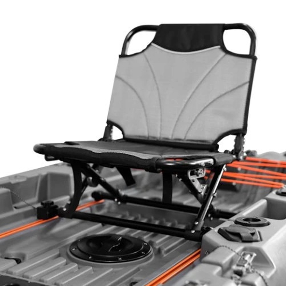 Balıkçılık için optimize edilmiş tasarımında ekipman yerleştirme alanları, geniş depolama bölümleri ve ergonomik oturma platformu bulunur. Kaymaz yüzeyler, taşıma kulpları ve güçlü gövde bağlantıları kullanım kolaylığı sağlarken, stabil taban yapısı sayesinde yeni başlayan kullanıcılar için bile güvenli bir sürüş deneyimi sunar. Modern gri ve siyah renk kombinasyonu ise kanoya hem sportif hem de profesyonel bir görünüm kazandırır.