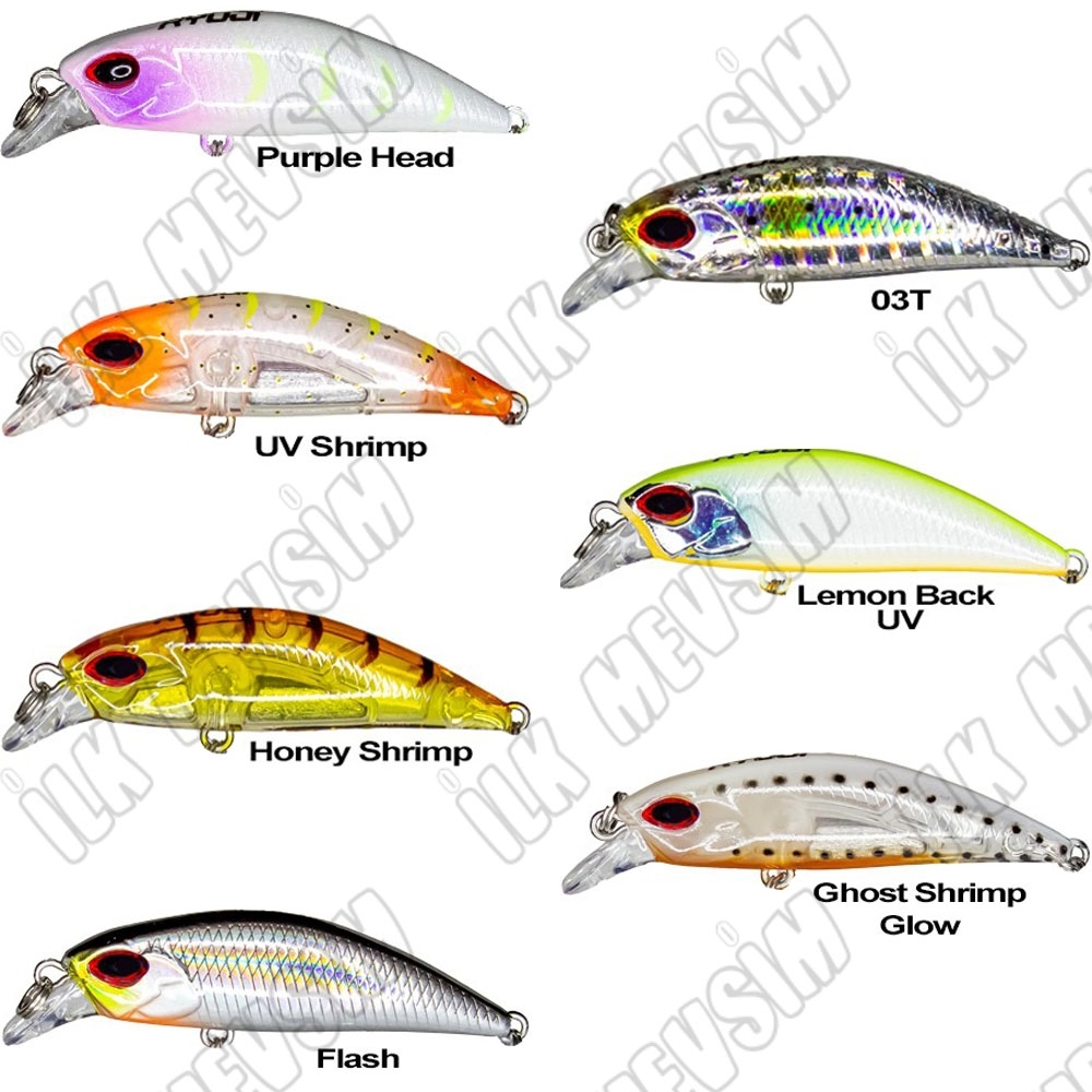 Ghost, Zebra Glow, Lemon Back, Trout UV, Shrimp UV, Tiger Shrimp, Rainbow UV, Purple Head, Ivory, Honey Shrimp, Ghost Shrimp, Flash, 03T